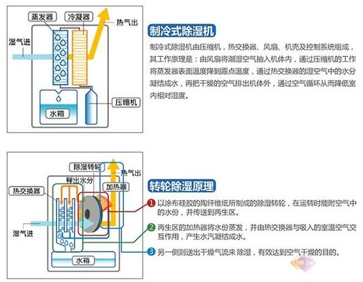 尽可能地把工业除湿机放在通风的位置,有待机状态的电器如彩电等,应尽量使其通电处于待机状态,其内部零件就会散发热量,驱散机体内的潮气,防爆除湿机,防止内部元件损坏。另外,房间居于低层,湿气比较大的居民,**可以考虑选购一台除湿机来改善空气湿度。若发现电器有不正常现象,应立刻关闭电源,及时请专业人员修理。在这样的天气,市民可适当在室内放些吸湿性物质,也可使用除湿机或开启空调机。根据空间的实际应用适用性来选择。除湿机是要固定安装还是方便移动。这是考虑到不同区域对空气湿度的要求不同来选择。一些比较潮湿的地方,可以安装固定除湿机,这样比较节省空间。除湿机配合冷冻进行除湿,两者相比较的话,后者比前者总耗电可节约20-30%。如果用户具备供应蒸汽的条件,则这种方式的节能效果将更为显著。