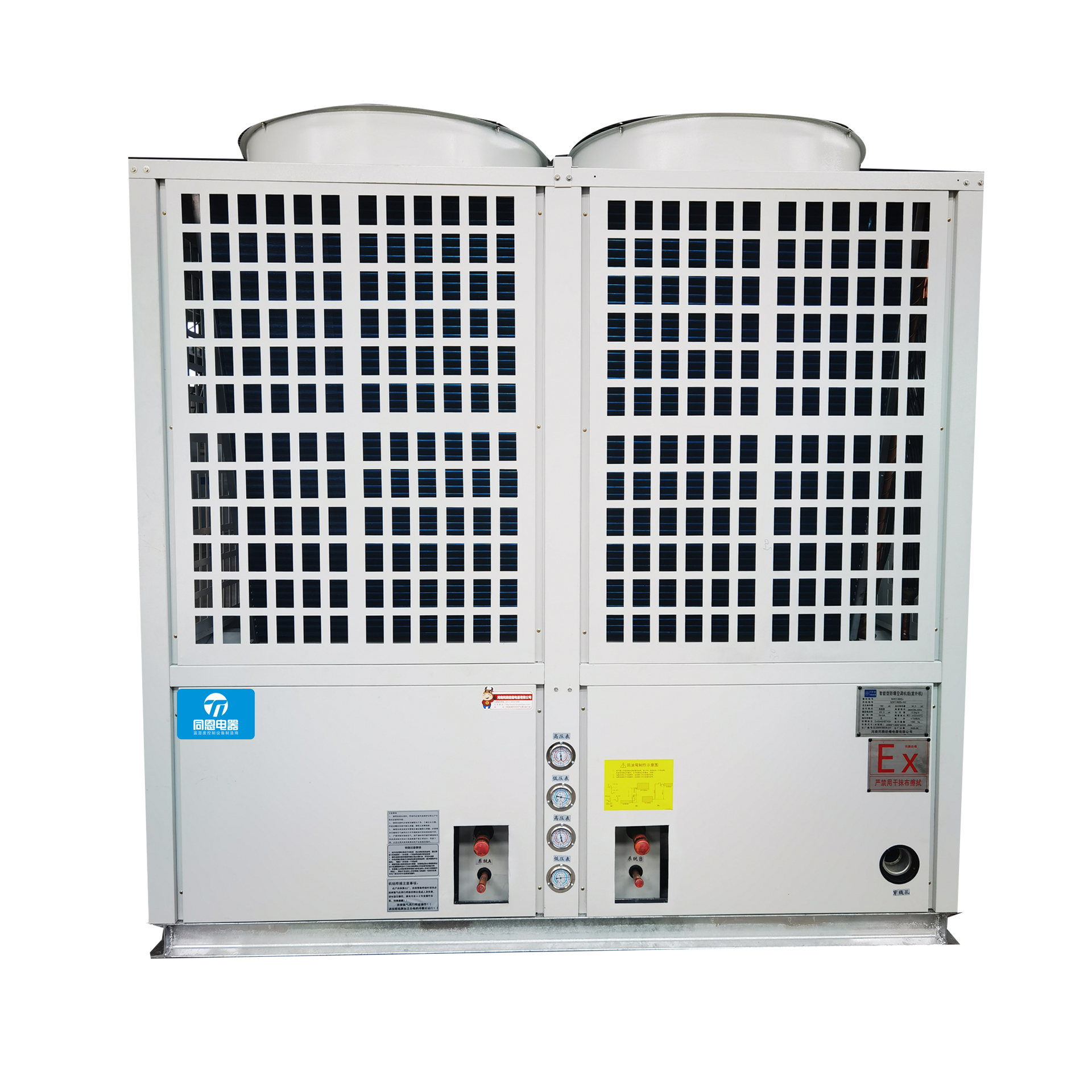 机组顶板采用特殊的结构,确?;椴唤?,门板采用聚氨酯发泡,确保隔热保温性能,电器箱采用密封结构,确保电器安全,电源接线置于电器箱内,无屋顶漏水之虞。