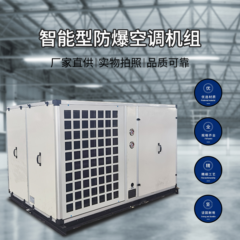 直膨式全新风防爆空调机组具有制冷、制热、加湿、通风、净化等五大功能;既满足温度要求,亦可达到通风净化之效果。采用无框架、卡槽式箱体结构,有效保证机组的适用性能,整体结构紧凑牢固,保温性能好,隔音效果优越、美观大方。直膨式全新风防爆空调机组采用性能较高的低噪音离心风机,具有风量大,静压高、噪音低和运转平稳等优点,通过严格的制冷系统优化计算,确保在不同环境下正常运行。根据客户需求设定温度要求自动启停、精度高可靠性强、操作简单。全自动温度控制,16C°-30C°任意调节 ??刂莆露?℃ 。优化节能,运行效率较高,配置高低传感器、防冻?;ぁ⒐乇;さ榷嘀匕踩;?,运行安全稳定。