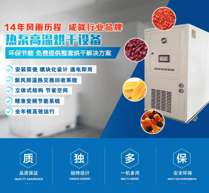 同恩牌热泵干燥机是一种利用热泵原理集除湿、加热,排湿于一体的新型节能智能化干燥设备,来除去空气中所含水份,降低空气湿度,此设备不受外界环境温度湿度影响,适合各地区使用要求。机器采用我公司回热循环热泵除湿方式,拓宽了除湿机在工业干燥领域的应用,干燥性能比普通热泵除湿干燥节能30%以上,大大节约运行费用;中高温干燥方式(常温~70℃),接近自然干燥,被干物品的品质好、色泽好、产品等级高,无污染,而且***环保卫生要求。干燥过程中物料不变形、不开裂、不变色、不变质、不氧化、干燥彻底、干燥后复水性好、营养成分损失少,储存期长,比任何传统干燥设备更有效地?;じ稍镂锏纳⑾?、味、个体形态和有效成分。采用送风循环脱水并实现物料快速干燥?;椴捎么ッ寥远刂品绞剑ù形率壬瓒?,机器故障显示及工作模式和设定定时开关机、循环开关机以及时空模式等),性能稳定,操作方便。根据客户需要,可设定不同干燥曲线,满足不同种类物料干燥,具有适用范围广,干燥效果显著,外形美观,结构紧凑,功能齐全,运行宁静,机组独立放置在库房外,易维护及操作,延长设备使用寿命。