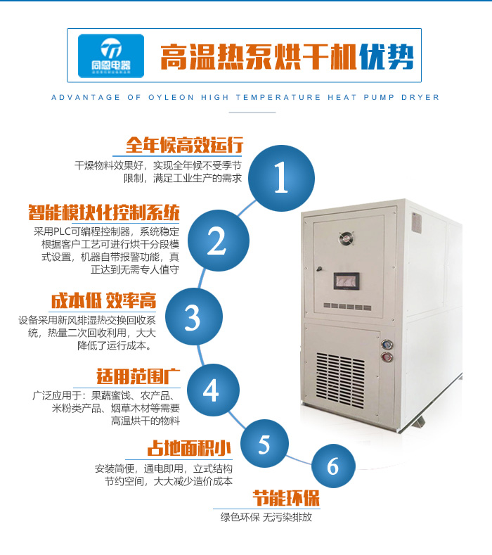 同恩牌热泵干燥机采用谷轮或大金压缩机,采用热泵技术,节能脱水,使得干燥效率大大提高,特别是在高温状况下干燥物料,有很高的能效比